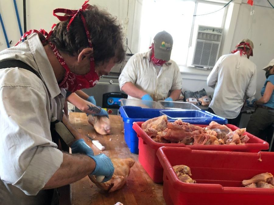 Sharpened our knives and went to work. We processed 232 birds and by the time our orders were packed and ready to ship the next day we only had 10 whole chickens and a few packages of drumsticks left in the freezer! That’s over 1,000 lbs of chicken to our customers in 1 day.