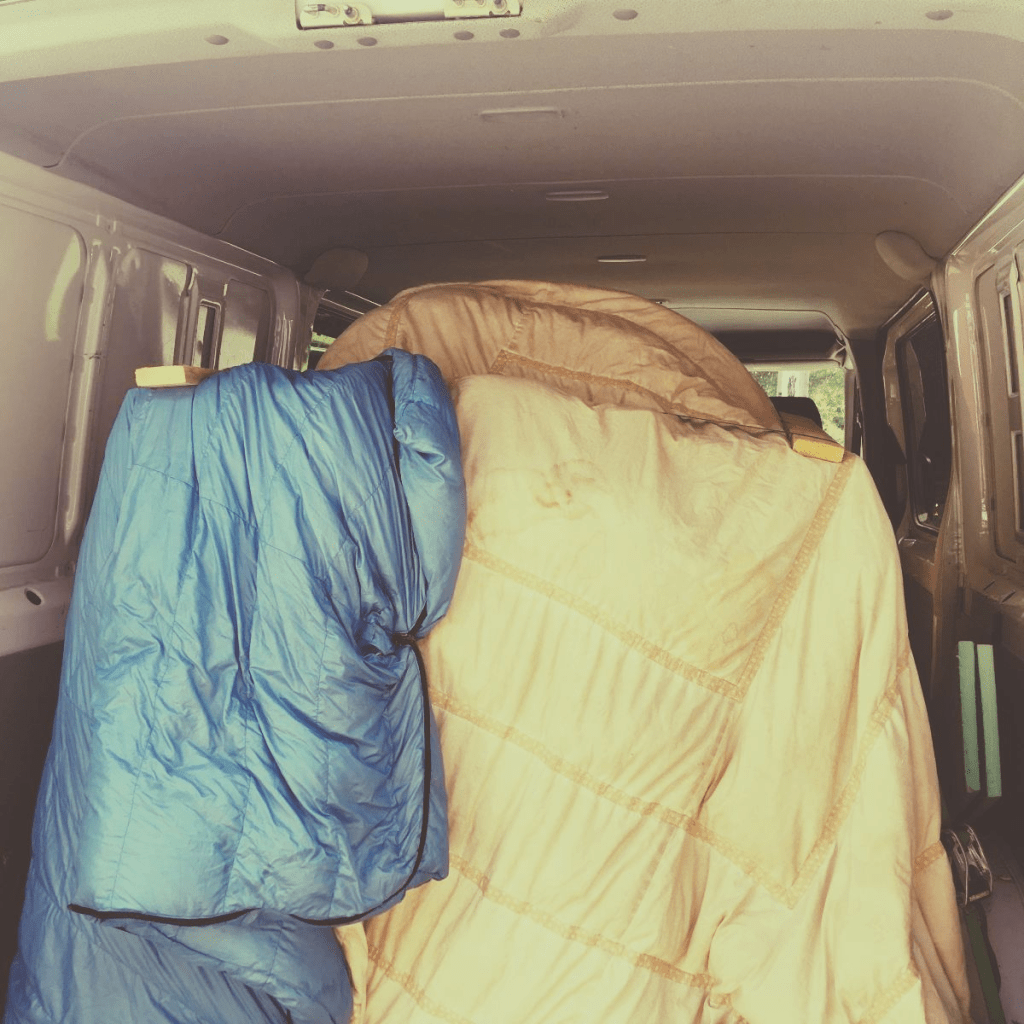 Last year our minivan went the way of the scrap heap when the engine died on it’s last meat delivery. This year we’ve teamed up with Tangleroot Farm and rented their delivery van for our trip, and man what a difference to have such space. There are even tie-downs in the floor so I could keep the box towers from falling over!
