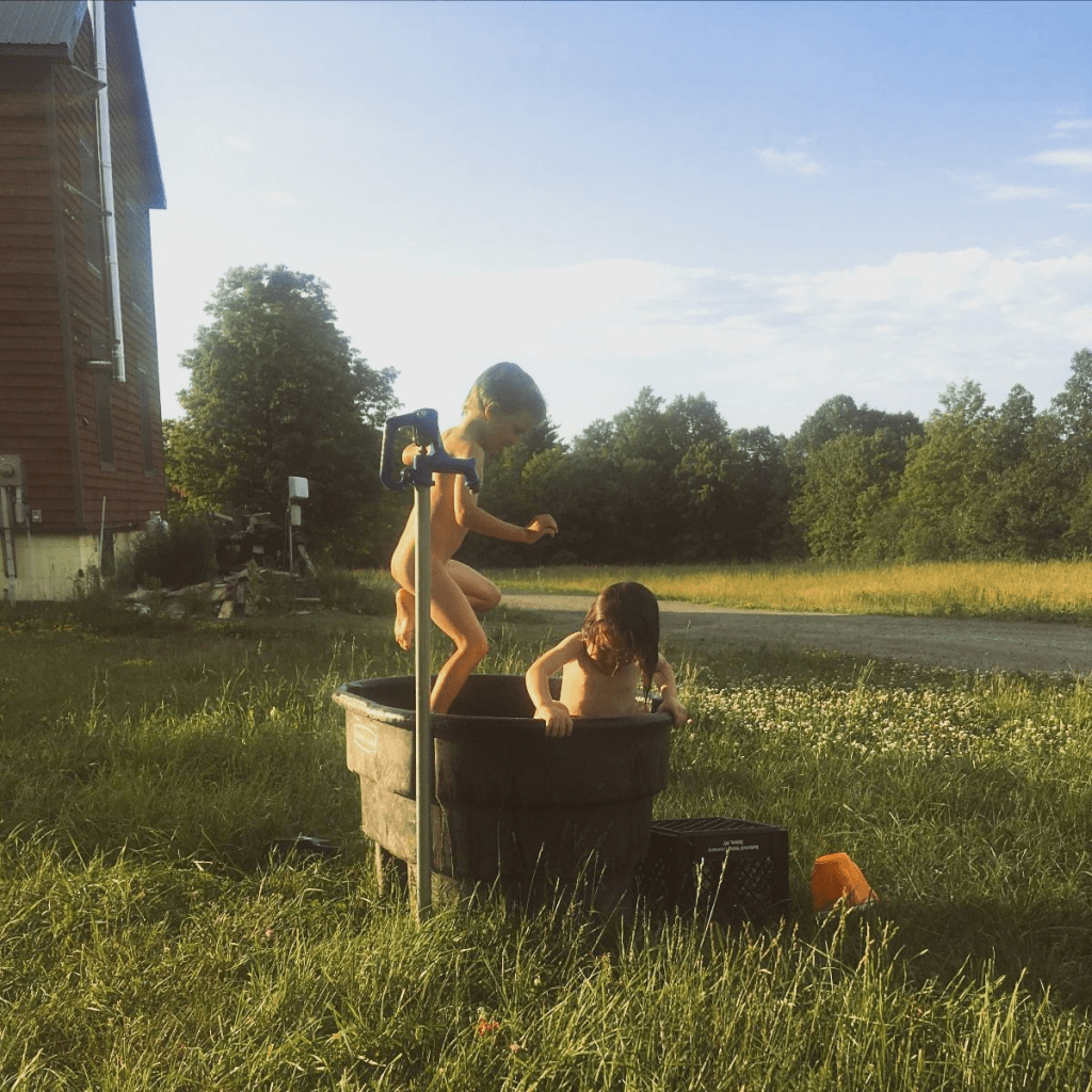 It has been a dry and hot summer so far. The only parts of the yard that are soft and green are the areas around the garden sprinkler and “swimming pool” 🙂