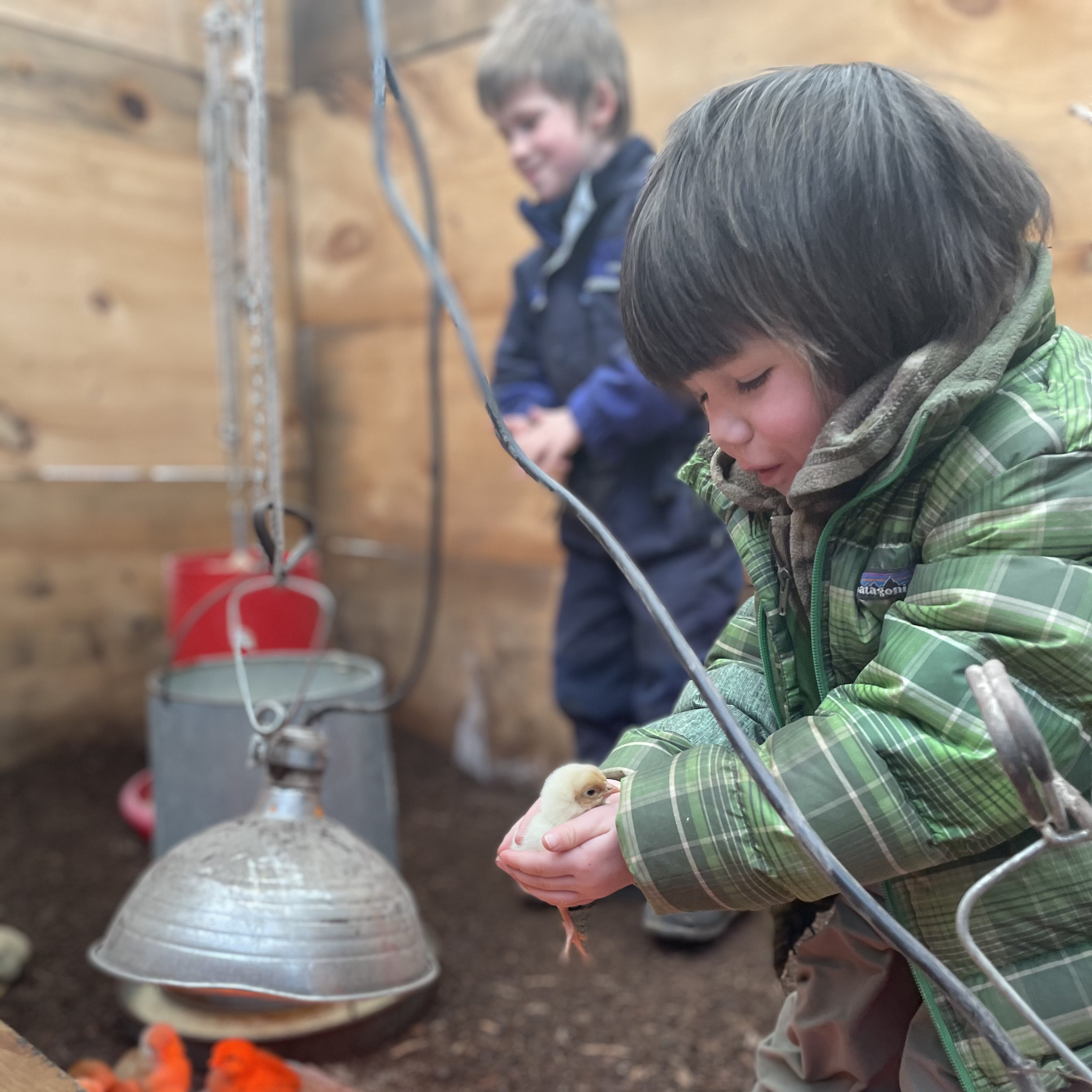 Day old chicks are often the first animals to arrive on the farm in the spring, and this year the calendar has not even flipped to spring yet. We are pushing the envelope of season extension this year to try to keep our freezer full next winter. So our first batch of chicks arrived this week and we’ve had the heaters cranking in their little house to combat the wind and 15 degree temperatures. Our chicks hatch at Freedom Ranger Hatchery in Reinholds, PA on Monday, then they are packed into boxes with a layer of feed on the floor and sent with the Postal Service to our local post office here in Essex, NY. Wednesday morning we pick them up and bring them back to the farm and get them settled in their warm room that is called a “brooder.”