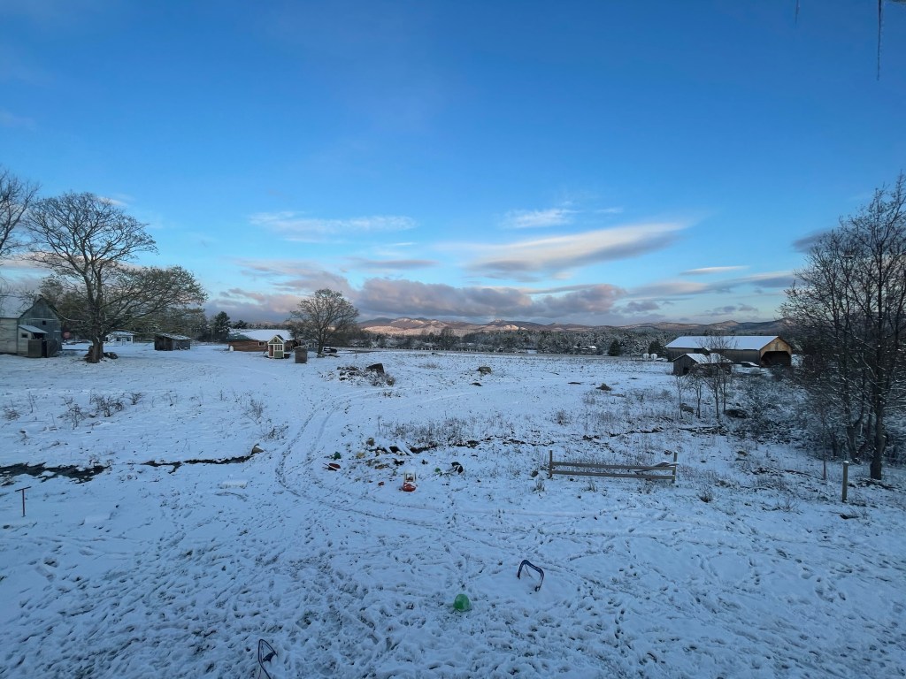 This week felt like a battle. We started with seasonal Mrs. Thaw weather, mud and cold wet fingers, then it felt like King Winter came charging in on his chariot, Jack Frost frolicking behind him. We woke up on thursday morning to 25 degrees and enough snow to do some sledding. And then Mrs. Thaw came back with a bluster and good gusts wind, melted all the snow and we had 55 degrees and sunny to welcome the second batch of chicks to the field on Friday.