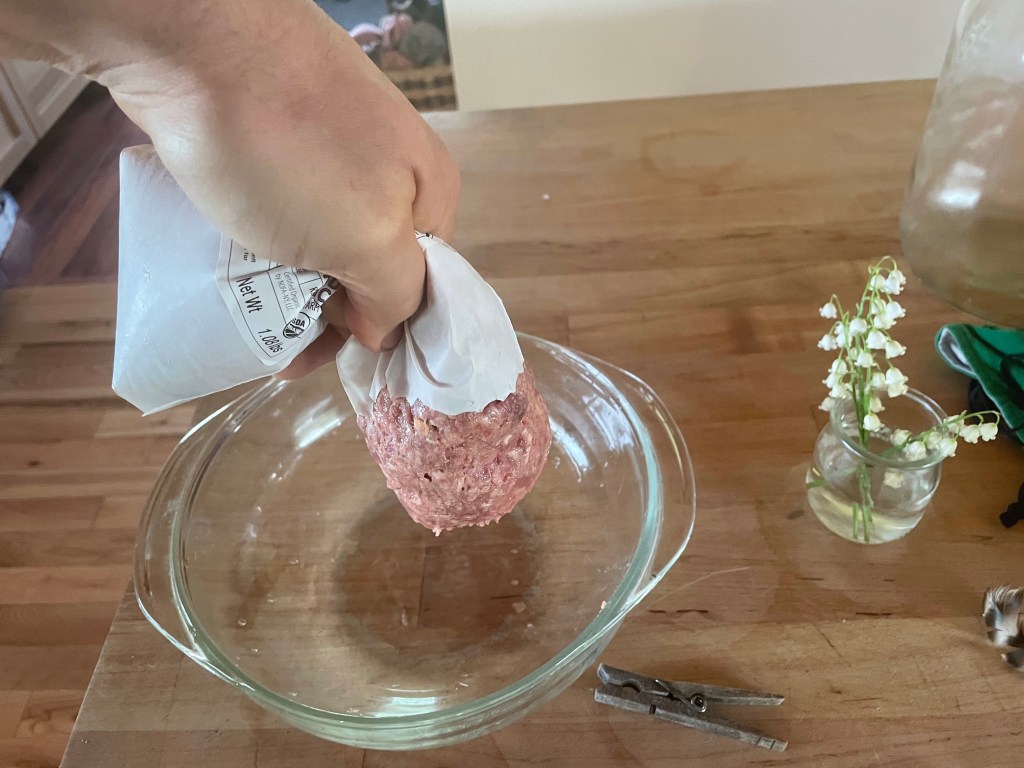 This is our second year parting whole birds and selling the parts retail – breasts, thighs, tenders, wings, drumsticks, legs, feet, hearts and liver. The chicken parts and whole birds move well for us, but what to do with the carcasses? These are the ribs and back bones of the chickens that are left after taking the parts off. Some of the carcasses get roasted and made into delicious Chicken Bone broth, but we’ve also been looking for another product to keep our waste as close to zero as possible.
