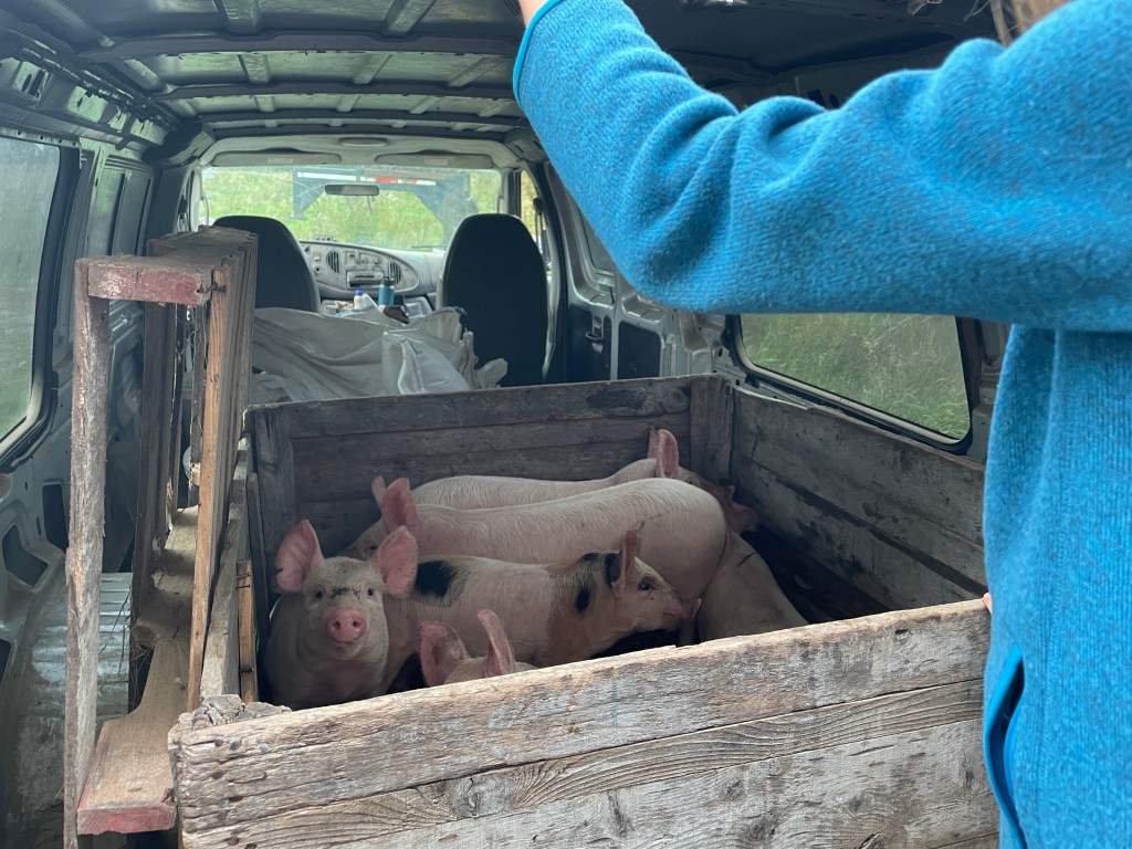 We love pigs. It is called husbandry for a reason, raising and caring for animals is an intimate process and each species has its own personality, quirks and demands. It was a whirlwind week of preparing for their arrival, welcoming some old friends for a visit, unloading pigs, building a pig pen and getting to know our new friends.