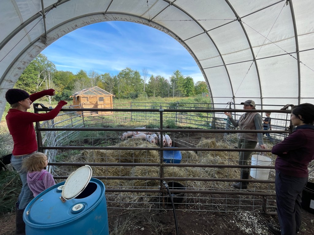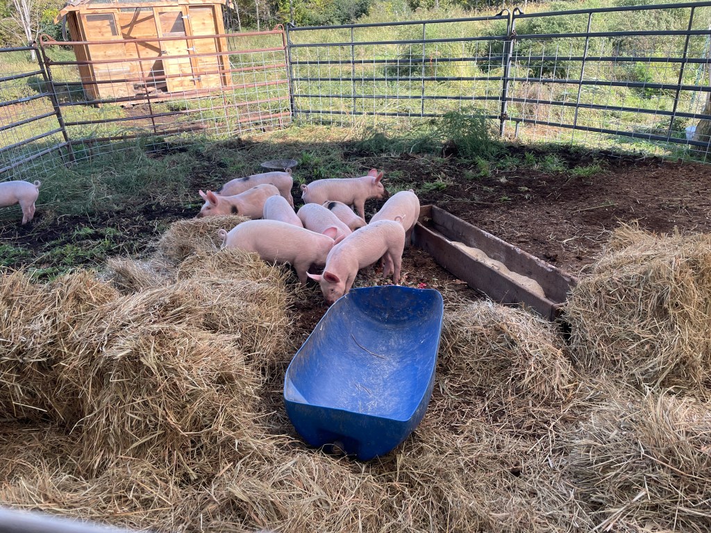 We had put some feelers out for getting a batch of piglets to raise this fall into the winter to keep our freezer stocked with Pasture Raised and Organically fed Pork. And when our friend Mark Kimball at Essex Farm said they had a litter of pigs for us we were thrilled. Mark and his animal team led by the wonderful and caring Anne Brown, raise some awesome pigs. They are on the road to being a Certified Organic operation, and they have been raising and breeding pigs since before Racey and I worked there in 2009-2010. Essex Farm is only 7 miles down the road from us so it was not a long commute for these guys.