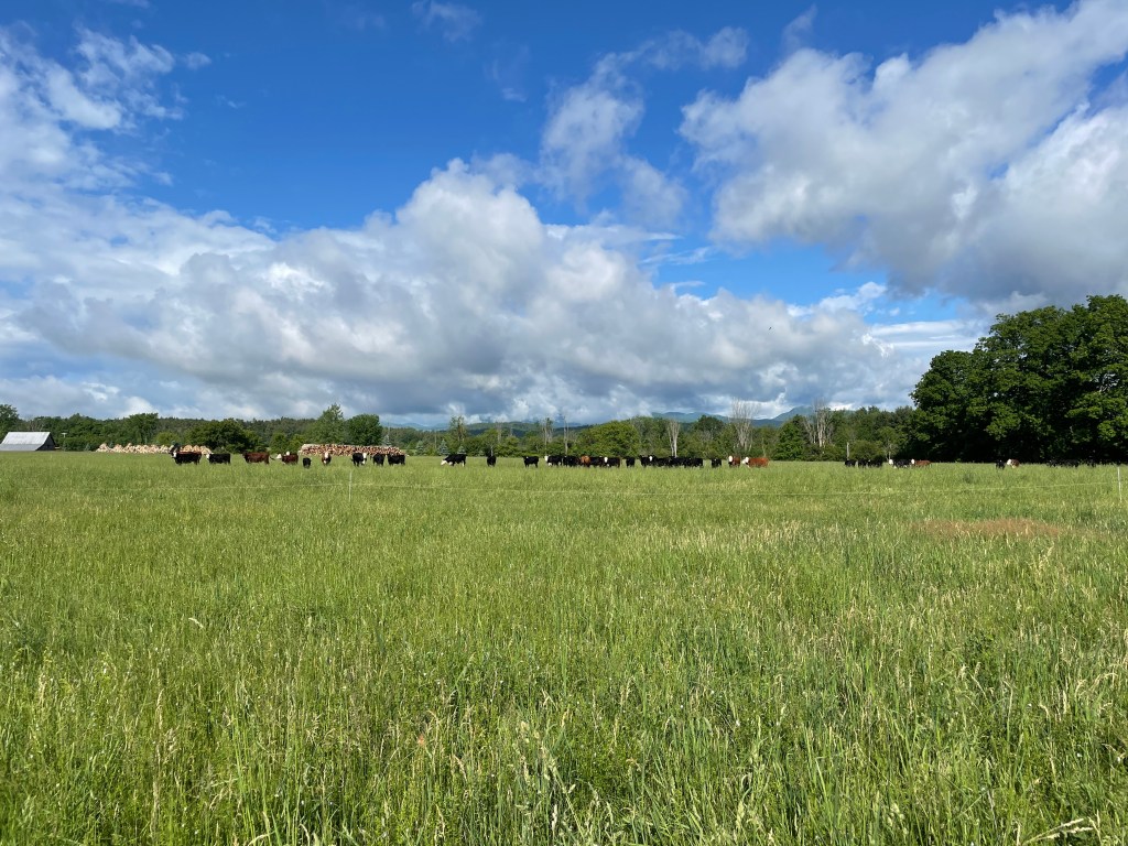 I wish I had a drone this week. The cattle have moved into the field where the chickens are making their rounds. It is difficult to capture in a picture, but you can see above that the cattle are all standing in an unnaturally straight line. There’s not shade right there, so what could it be?