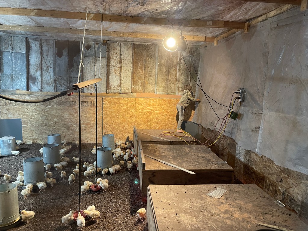 Secondary goal: space is still comfortable for chicks with good lighting and ventilation and convenient for the humans doing chores.