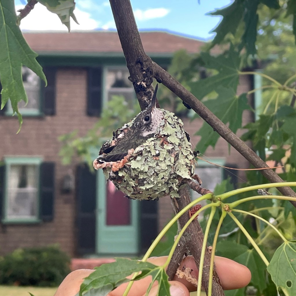 The ocean is full of magic and surprises, especially for those of us who live on a farm and only see the ocean once a year. But we also managed to see a first in the suburban forest of Cape Cod. We found a hummingbird nest! Does anyone know what species this is?