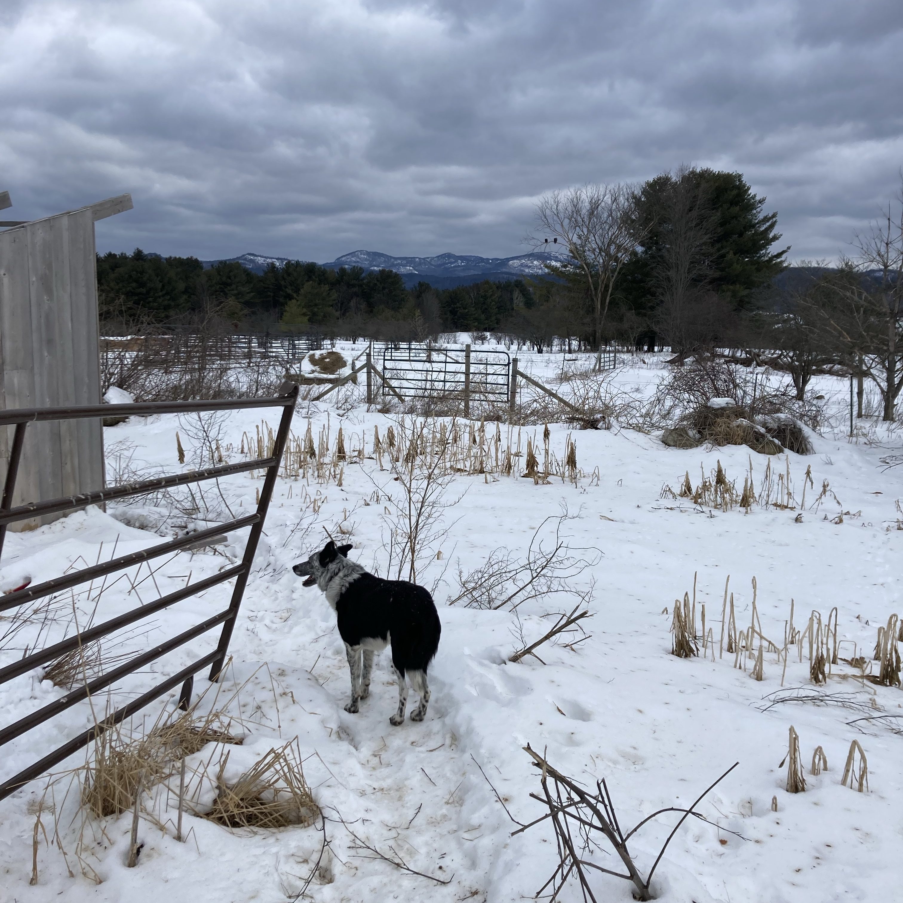 There is a pair of Bald Eagles that visit our farm regularly this winter. Can you find them in this picture? They are such a large bird that even with a phone camera with no zoom you can see them!