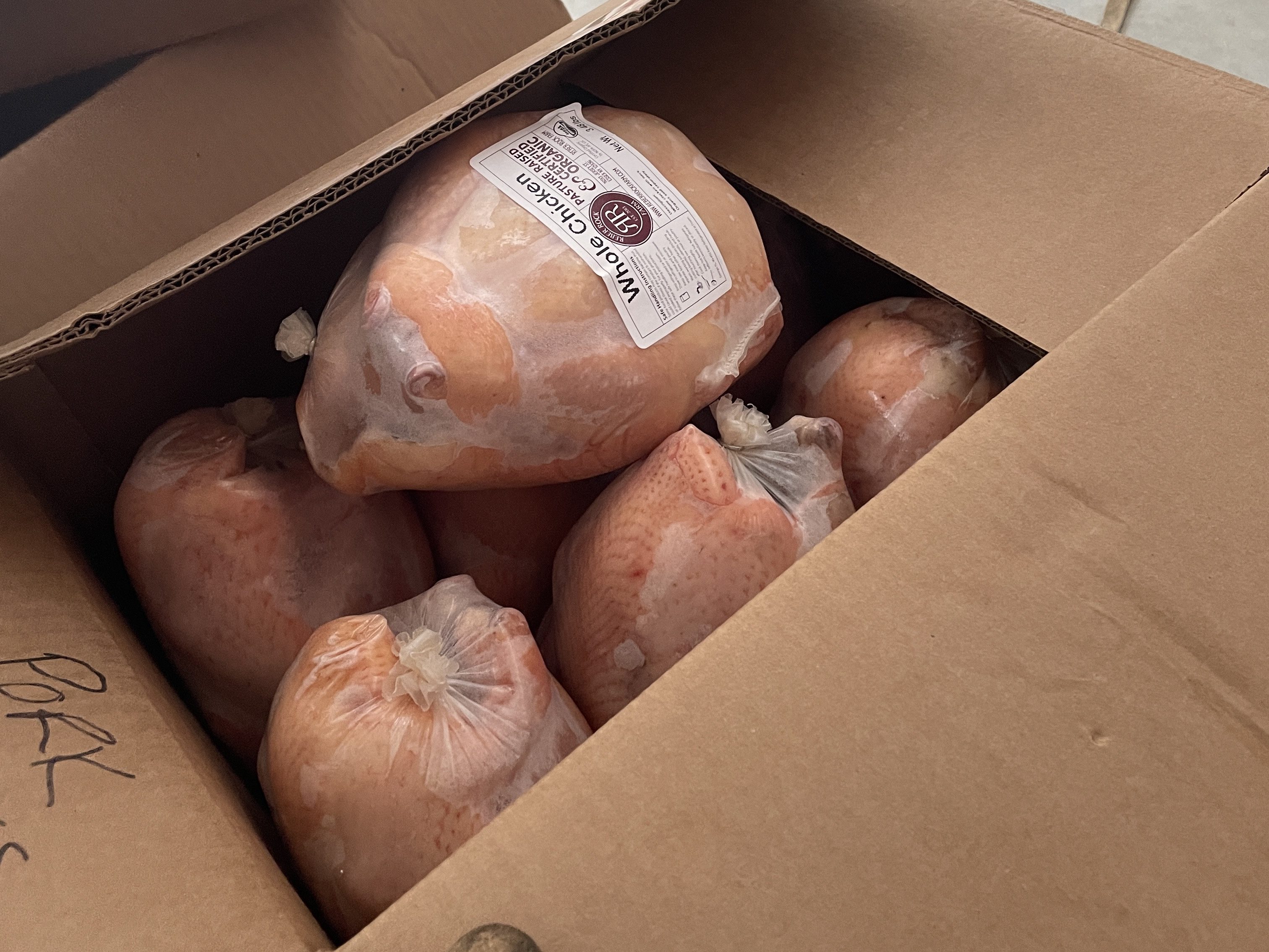 For the time being there is work to do. Our freezers have been empty of many chicken cuts for a while, so we will do our best to put our chicken back in the freezer. This means chicks come next week, even though there is still snow on the ground! We also “found” a case of whole chickens! How did we “find” a box you might ask? We often reuse our cardboard boxes and occasionally the old label is not completely crossed out. What we thought was some pork roasts, was actually a box of whole chickens! Yah. There are now 9 whole chickens left. We have also bought in some Pasture Raised Organic Chicken from our friends at Wrong Direction Farm (WDF). Dave and Rachel are awesome people and farmers. We bought in some of their chicken last year and we heard from a few folks that the chicken breast was too large for their liking. I passed this on to Dave and he handpicked packages that were smaller for us. We now have Chicken Breast and Chicken Thighs from WDF.