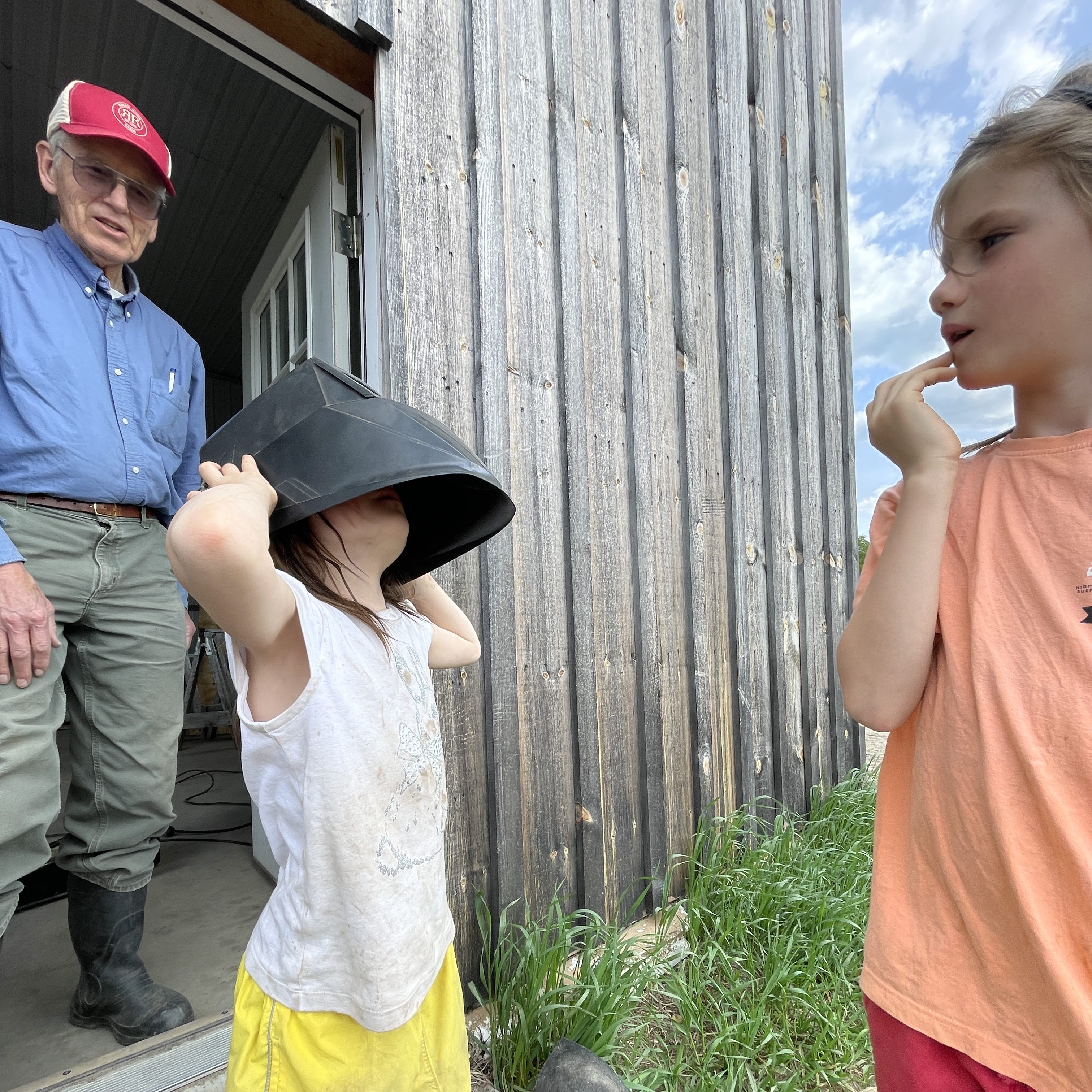 Did you know that you can look right at the sun when you’re wearing a welding helmet? Lovett’s creativity brought me back from my focus and hurry as we were trying to finish welding the frame of the first Mobile Range Coop (MRC), or pasture shelter for some added chickens this year. I’ve been wearing that helmet for hours each day this week and I had not once admired the sun from behind the safety and comfort of the welding helmet.