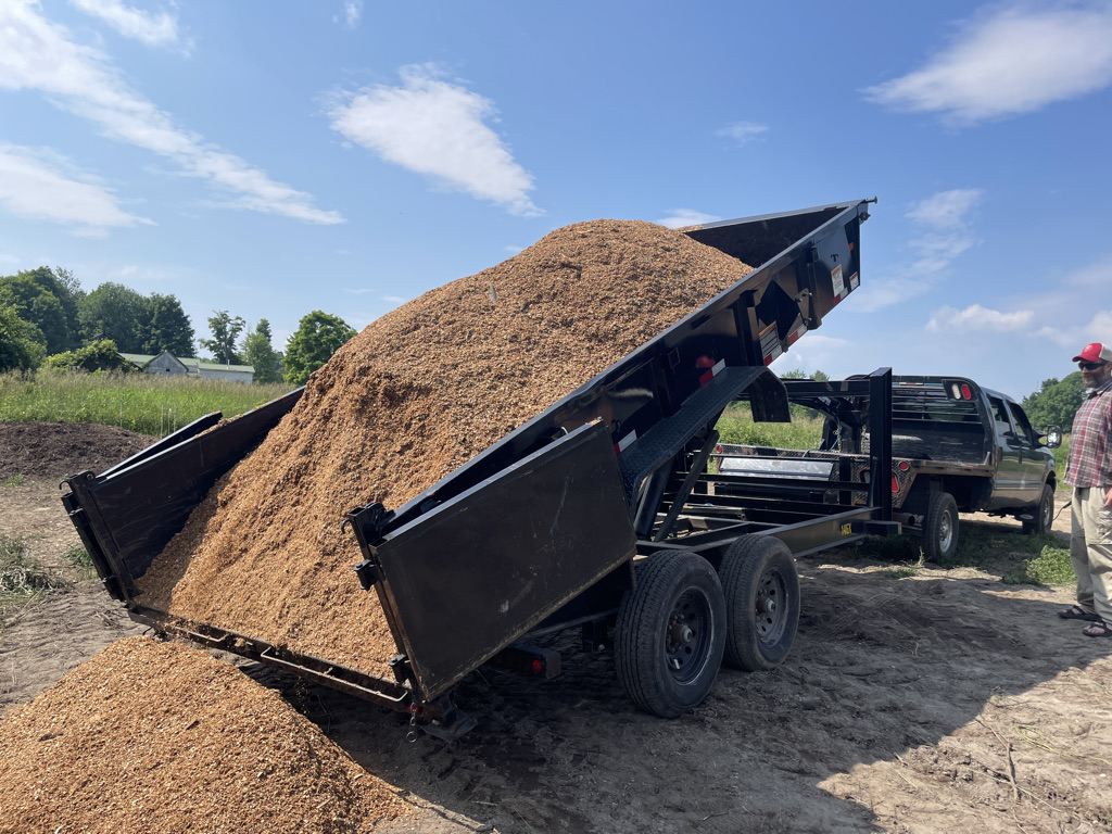 This week Noah borrowed this fantastic dump trailer from our neighbor and friend Tully. We hauled some wood chips from another neighbor Jerry who has a firewood processing business. We use these chips, mixed with peat moss bedding from the brooder and the viscera from chicken processing to make some pretty awesome compost. We will have compost available in the spring!